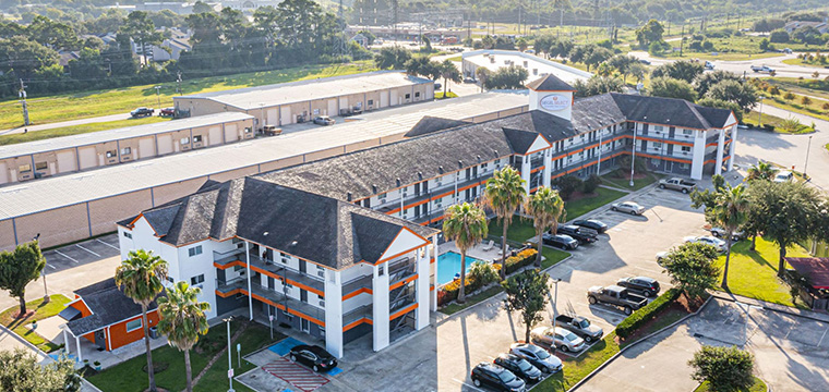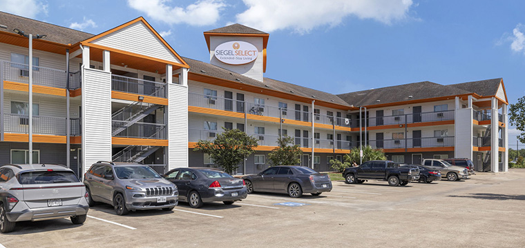 Siegel Select Houston offers great long- or short-term apartment suites with low rent and no lease required! We are located just off I-45 S, only 12 minutes from the Houston Space Center, 21 minutes from Downtown Houston and a short drive from Galveston Islands.